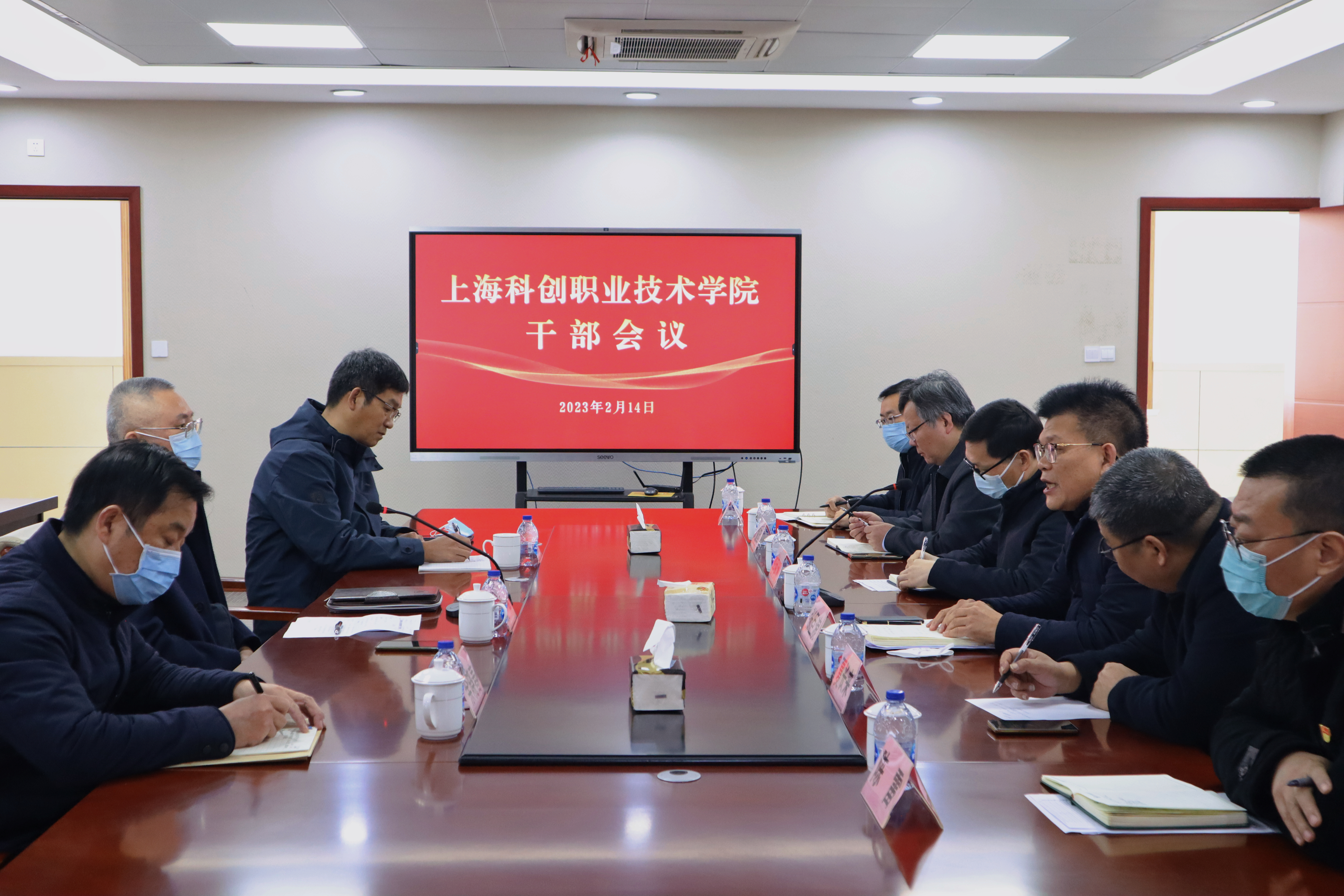 2月14日上午,上海科创职业技术学院召开干部会议,宣布干部任命决定。松江区教育工作党委书记姚辉,松江区教育局副局长付炳建、组织人事科科长余晓春出席会议。学院党委书记张巨浪,副院长夏长来、何佩军、项国平,上海市城市科技学校党委书记、校长陈雷等参加会议。