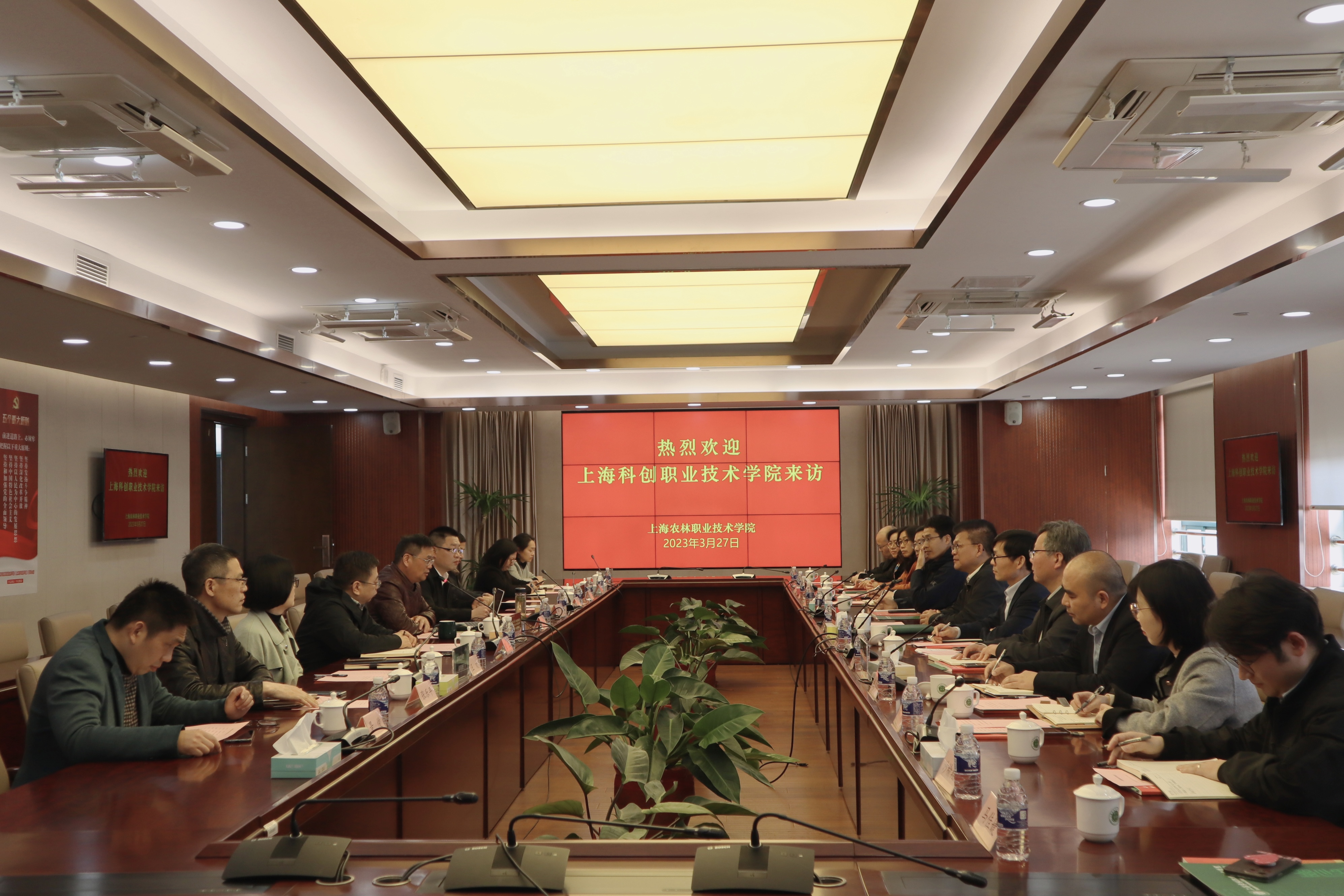 为加强学校之间的交流合作,提升学校管理水平和教师的教学能力,3月27日下午,上海科创职业技术学院党委书记张巨浪,党委副书记、院长李闽洲,党委委员、常务副院长李志伟,副院长何佩军、项国平等一行12人前往上海农林职业技术学院参观交流。上海农林职业技术学院党委书记蔡红,党委副书记、副院长邵阳,副院长张江和相关部门负责人热情接待。