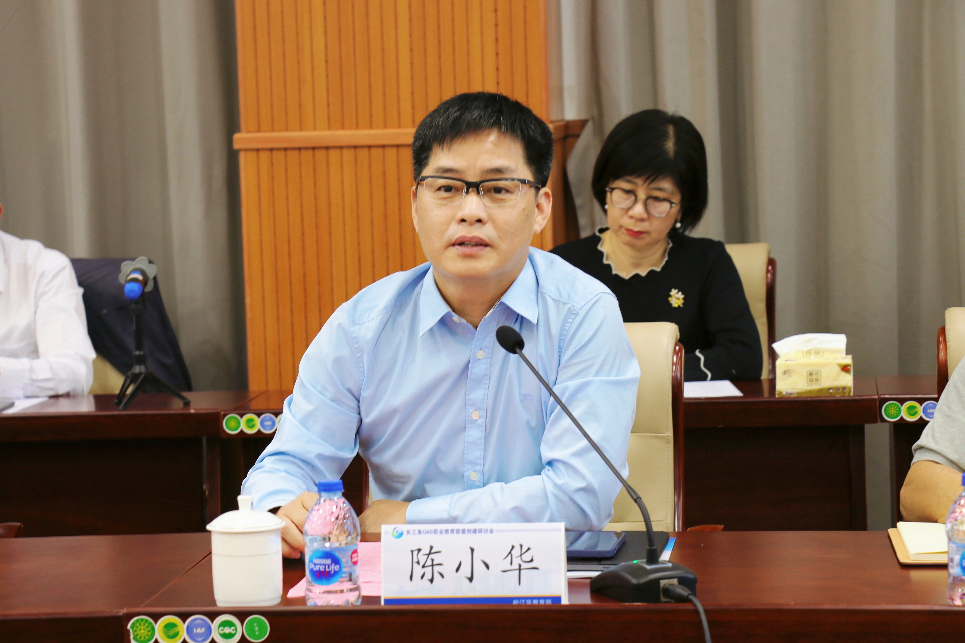 5月25日下午,长三角G60职业教育联盟创建研讨会在上海科创职业技术学院顺利举行,松江区副区长顾洁燕,区教育局局长陈小华、副局长付炳建,G60科创走廊九城市和安徽六安教育局相关领导出席会议。松江区教育局职成教科科长张峰,上海科创职业技术学院党委书记张巨浪、院长李闽洲,上海市城市科技学校副校长翟理想等区内职业院校及职教集团办公室主要领导参加活动。本次研讨会由陈小华主持。