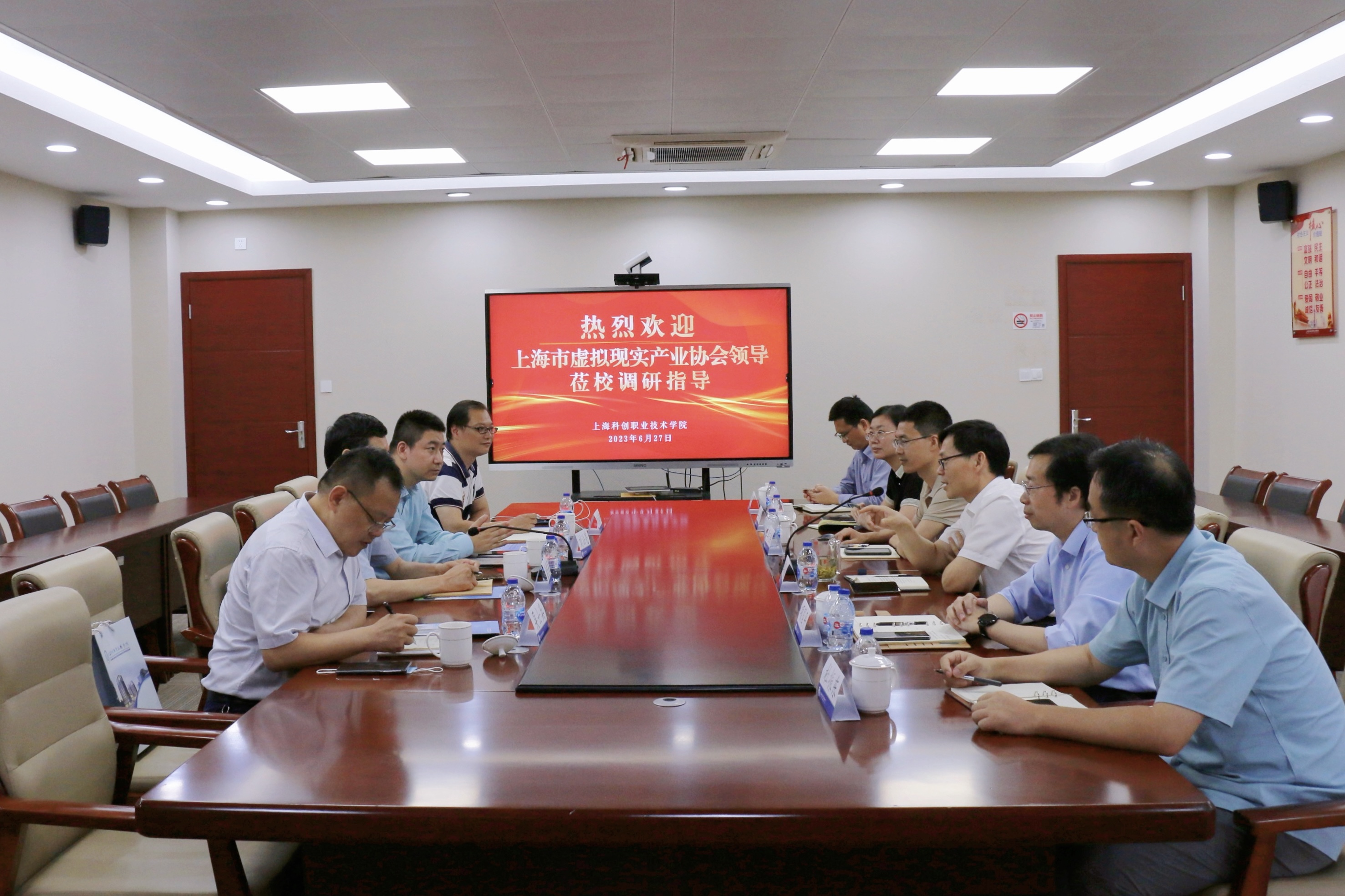 2023年6月27日上午,上海城建职业学院党委委员、副院长淦爱品,上海市虚拟现实产业协会秘书长刘法亮,上海交大教育集团职业教育研究院院长吴士兵,上海城建职业学院教务处副处长陆春华一行4人来访交流,共同探讨新型高职办学、产教融合、产业学院建设等合作事项。院长李闽洲主持座谈会,常务副院长李志伟、副院长项国平和相关部门负责人等参加交流。