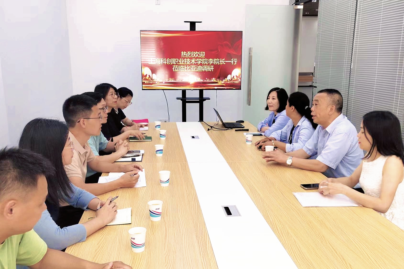 比亚迪有限公司人力资源部曹经理介绍到,比亚迪作为一家致力于“用技术创新,满足人们对美好生活的向往”的高新技术企业,经过20多年的高速发展,已在全球设立30多个工业园,实现全球六大洲的战略布局,在电子、汽车、新能源和轨道交通等领域发挥着举足轻重的作用。曹经理希望能与科创职院开展进一步的交流与合作,共同探索校企合作办学的新路径。