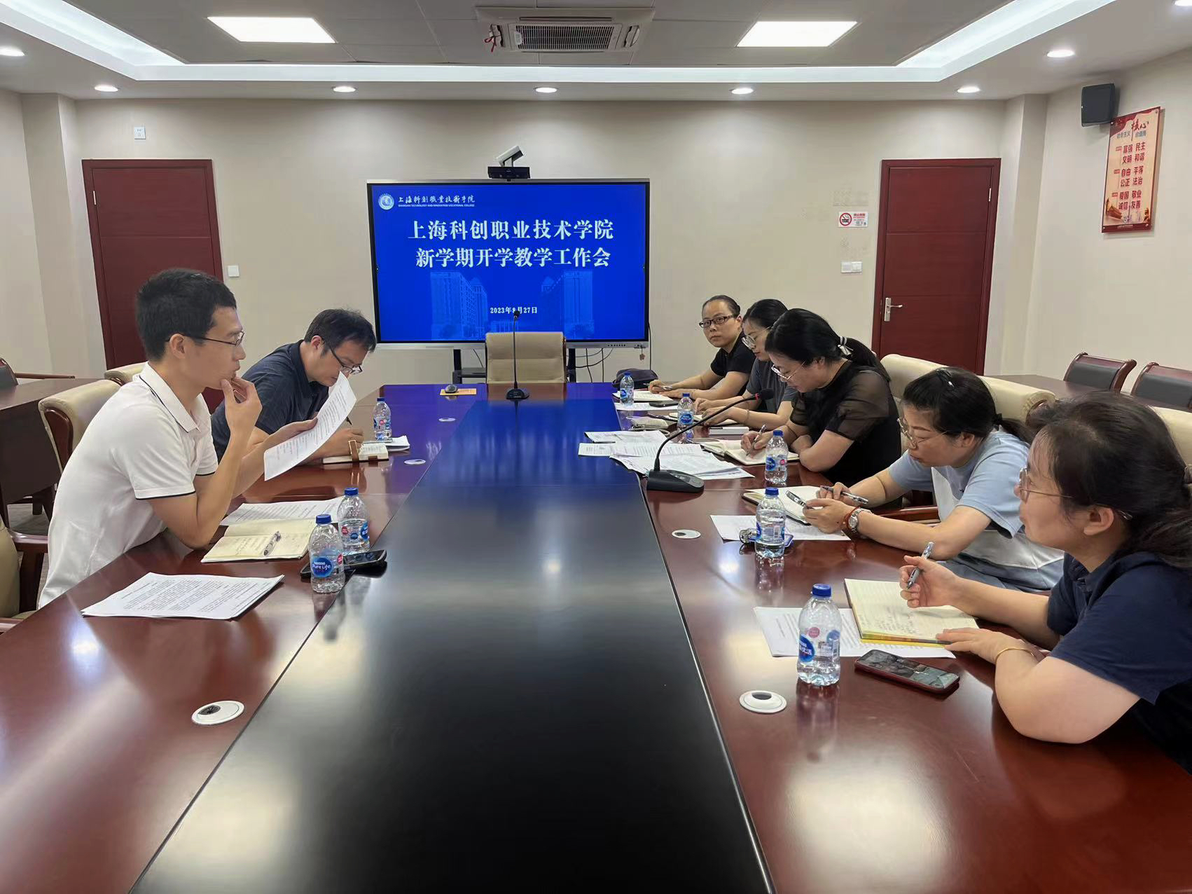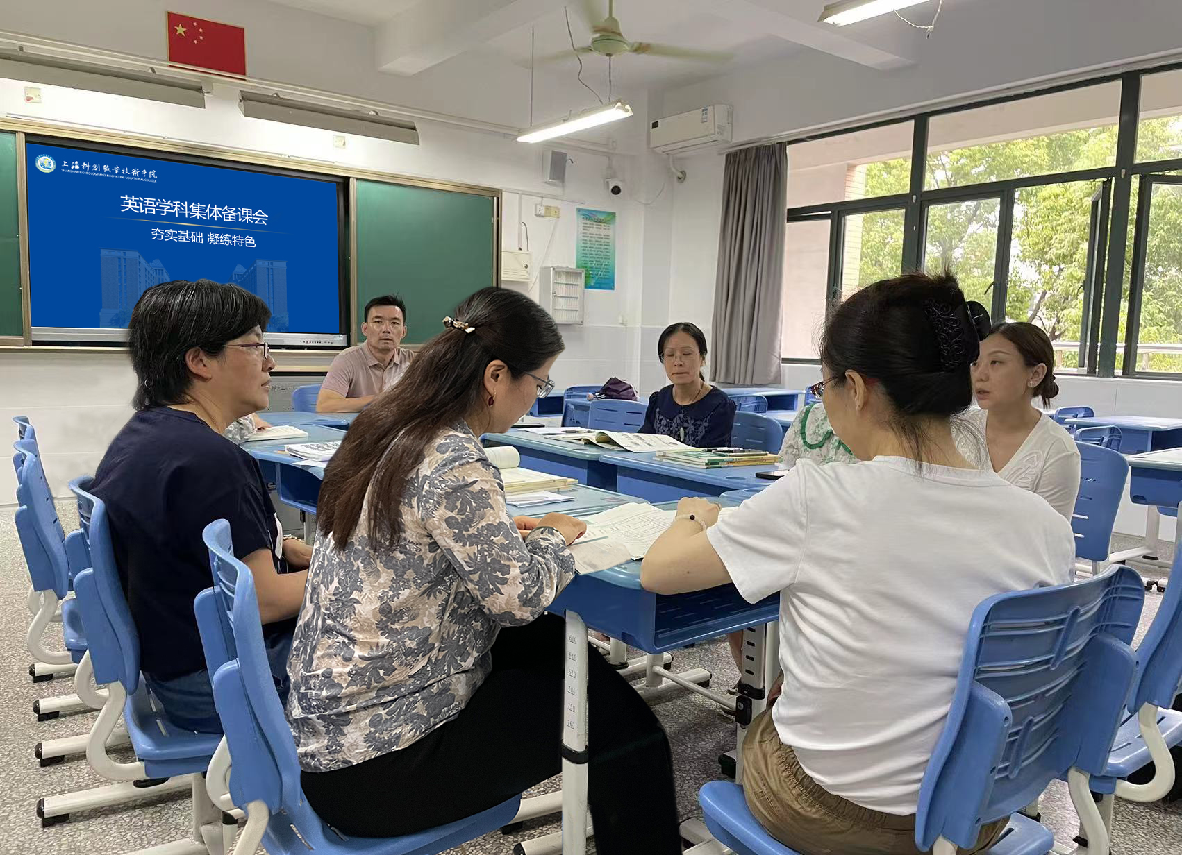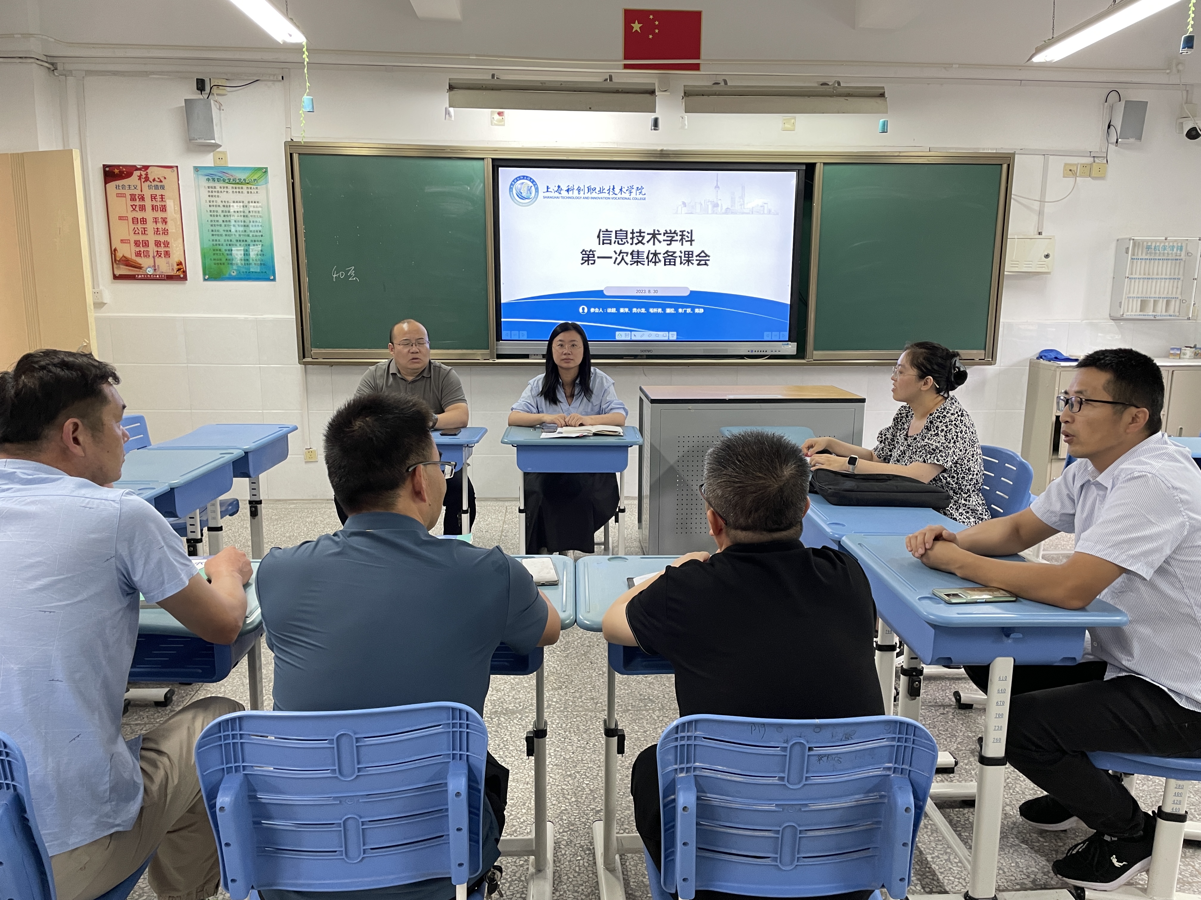 会后,四大专业群以及基础学科分别召开集体研讨暨第一次备课会,以明确教学任务、促进经验分享、探讨教学方法、提高教学水平。本着以学生为中心的原则,与会教师就教学文件、教学安排、教材结构、教学内容、教学方法及考评方式等方面进行了深入讨论。全体语文老师认真研读新课标、新教材,李院长表示,根据学科特点,语文教师应积极将松江优秀历史文化、松江名人事迹融入在教学中,并鼓励教师们积极开展课题研究,建设课程资源。数学研讨会上,李院长强调数学是自然科学的基础,是重大技术创新发展的基础。他指出要强化师资队伍建设,鼓励老师积极参加教法大赛,沉下心来做教科研,提升自身素质;英语教师在研讨会上表示应结合本校学生实际情况,重点选择适合学生学情及专业特点的内容授课,积极探究并利用相关课程资源,提高课堂效率和学生自主学习能力。