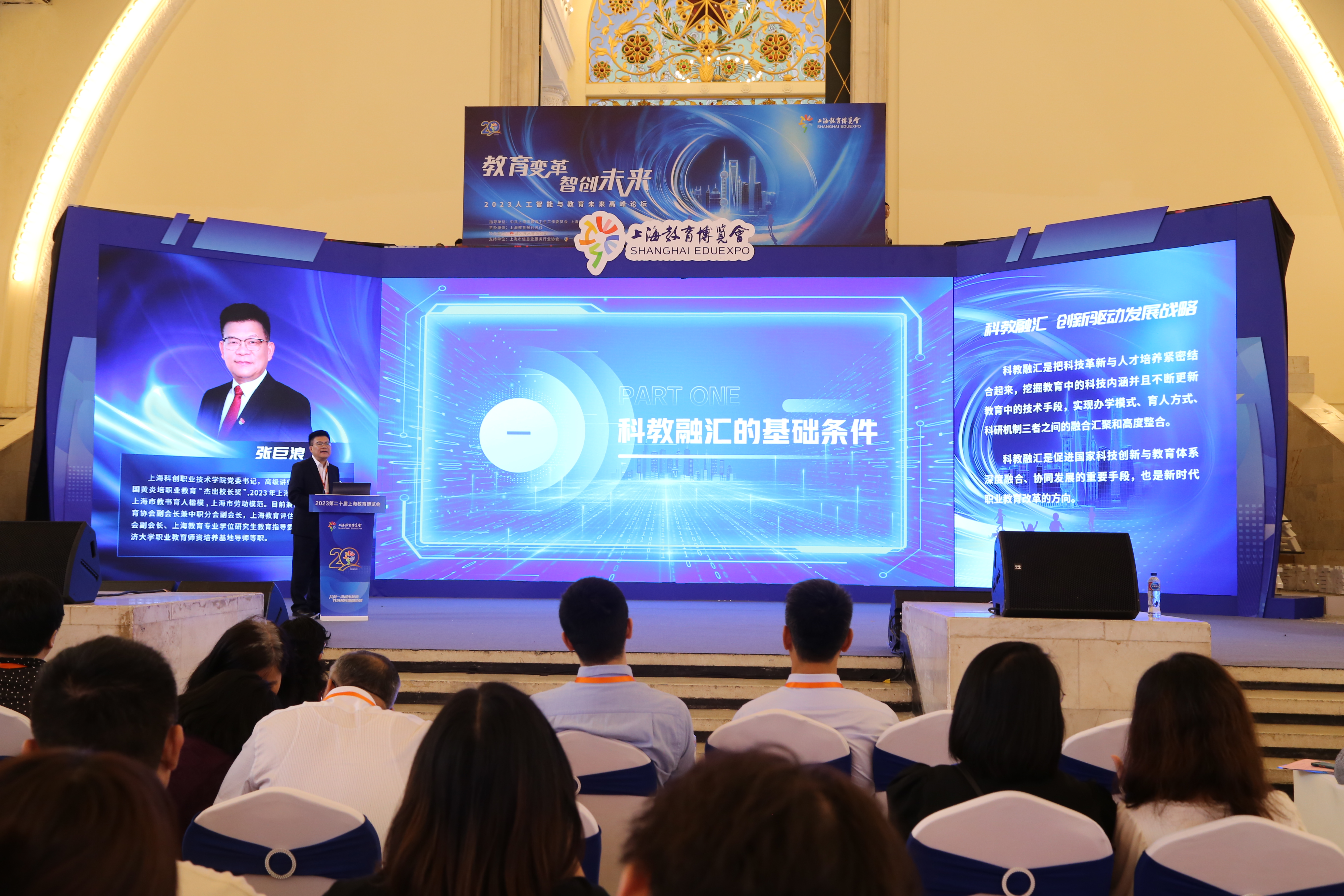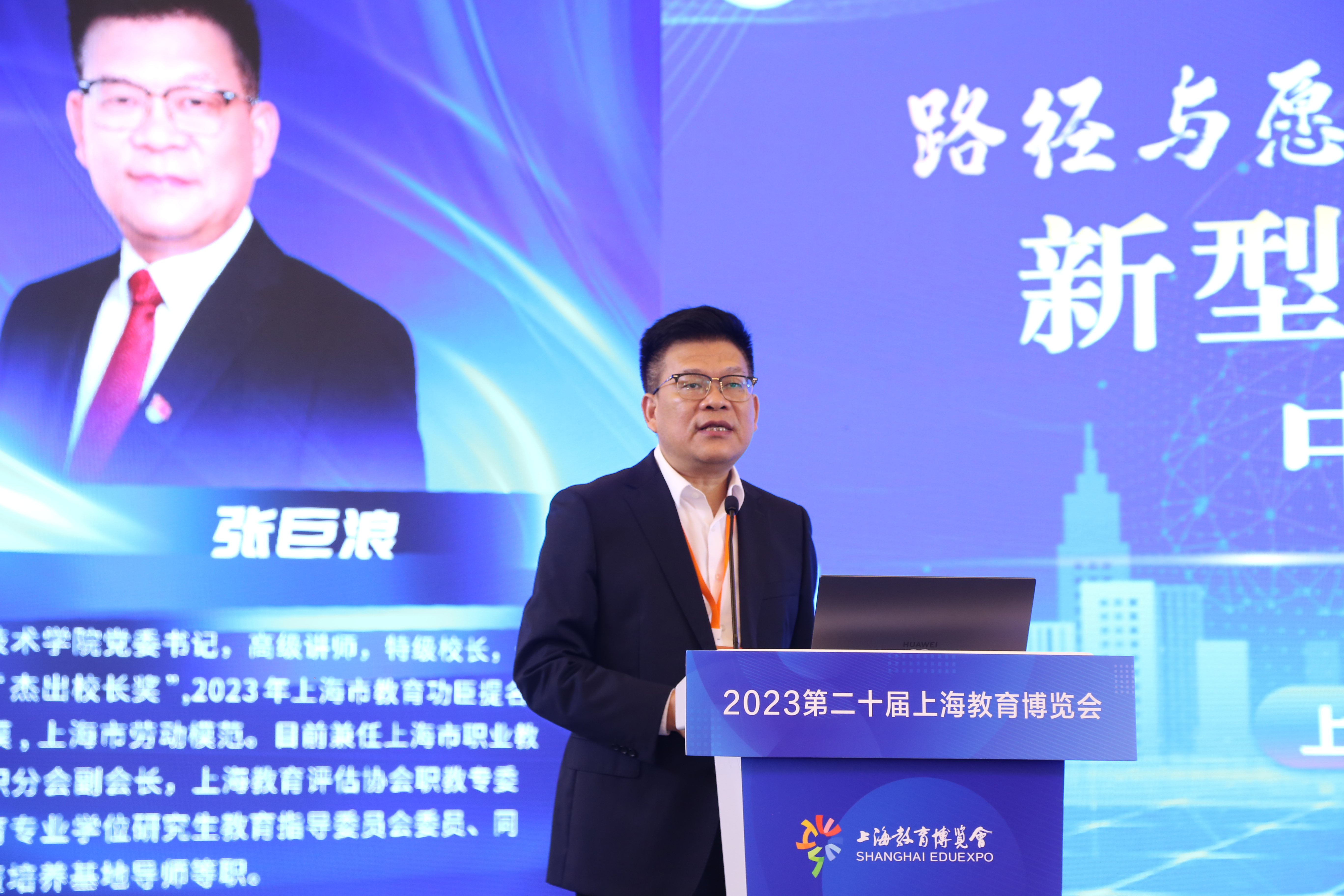9月15日至17日,2023年第二十届上海教育博览会“教育变革智创未来:人工智能与教育未来高峰论坛”在上海展览中心举行。作为新型高职学院代表,学院党委书记张巨浪应邀出席并在“产教融合 科教融汇 职普融通——赋能职业教育高质量发展”分论坛上与线上线下10万+人次观众作嘉宾分享。