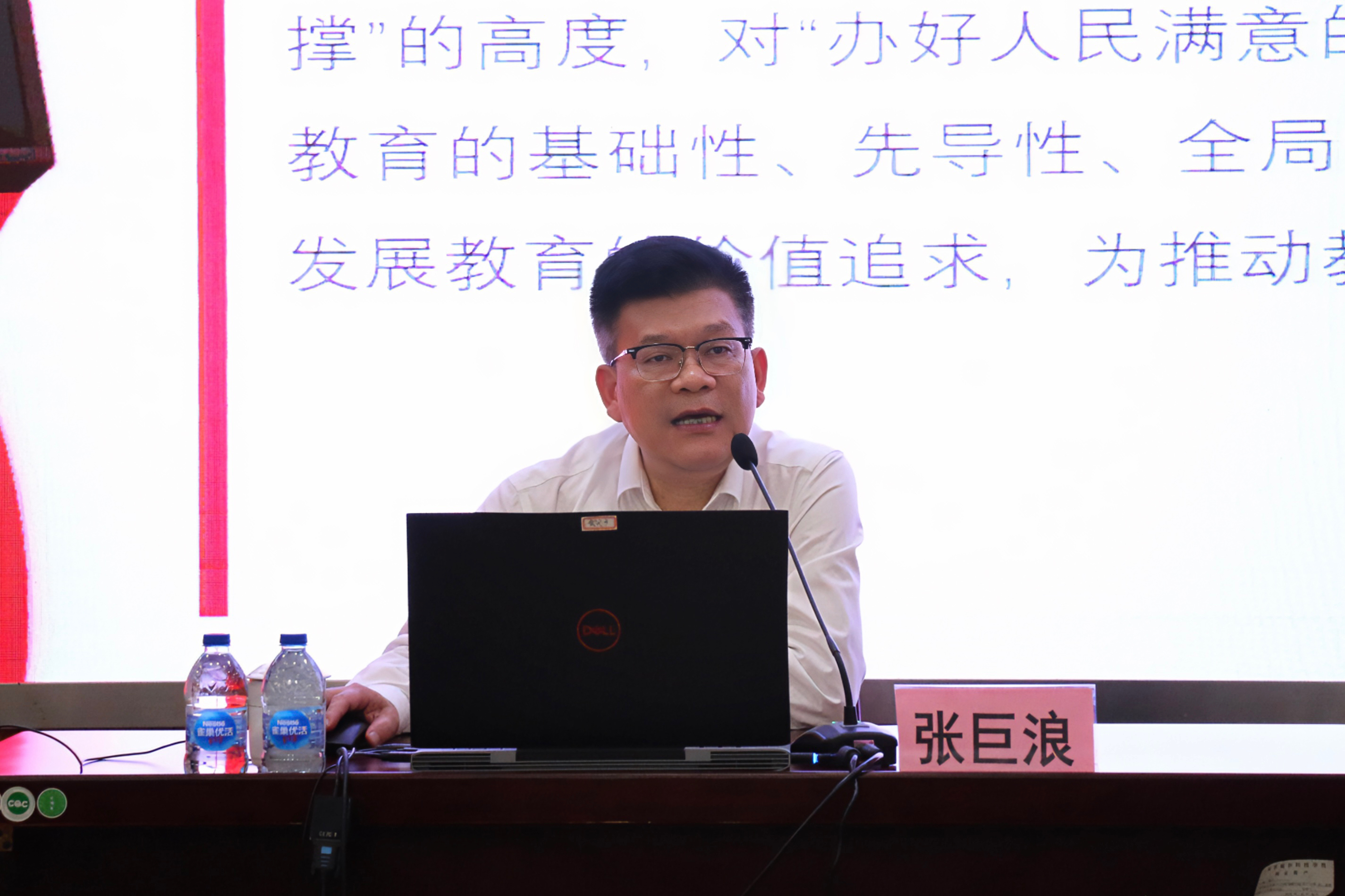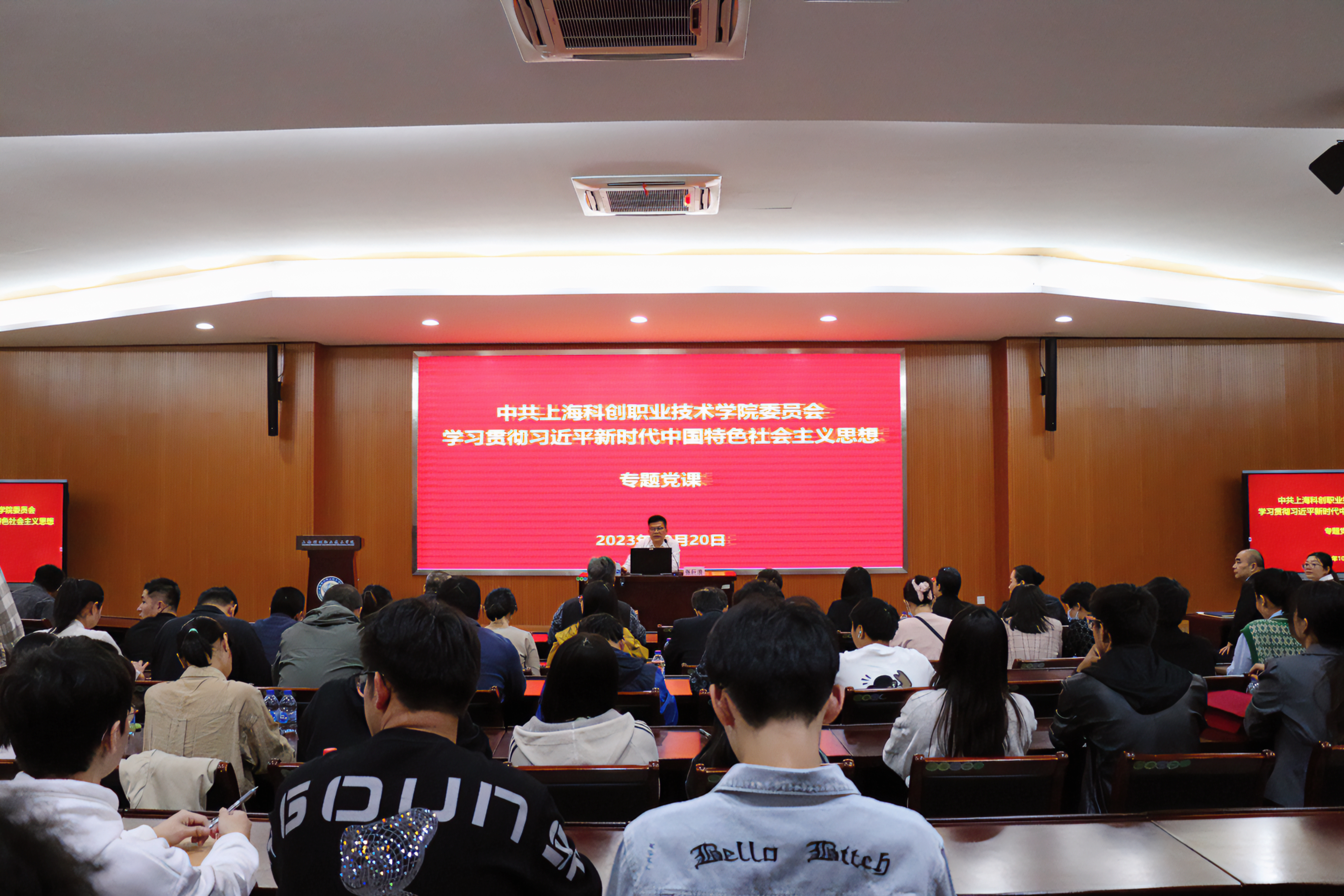 10月20日下午,学院党委书记张巨浪以《深入学习贯彻党的二十大精神,为办好人民满意的高职教育而团结奋斗》为题讲授主题教育专题党课。领导班子、处级干部和党员教师、学生团员参加学习。