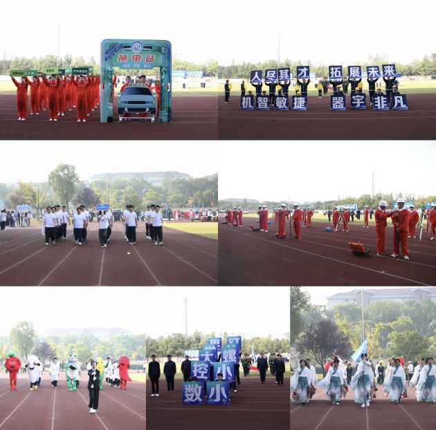 各个专业方队将传统技艺与现代科技、课内知识与课外实践紧密相连,用丰富多彩的形式、别具一格的创意展现了他们的专业技能。工业互联网技术、工业机器人技术、数控技术用醒目的标语、鲜活的图画、变化的队形、响亮的口号和形象生动的解说展示了智能制造学院学子们的专业自信。建筑装饰工程技术专业的学子们身穿汉服,手拿窗格和小亭子,用精彩的古风舞蹈,形象生动地诠释了大国工匠精神和对匠心文化的传承。建筑工程技术专业的学生们分组展示了各种测量仪器,凸显了富有特色的专业技能。新能源汽车技术专业的学生们用立牌模型演绎了新能源汽车换电池的过程,赢得了满场的喝彩。烹饪工艺与营养的学生们身穿厨师服,手拿勺子,跳起了动感的中华小当家舞蹈,把运动会欢乐的氛围推向了高潮。