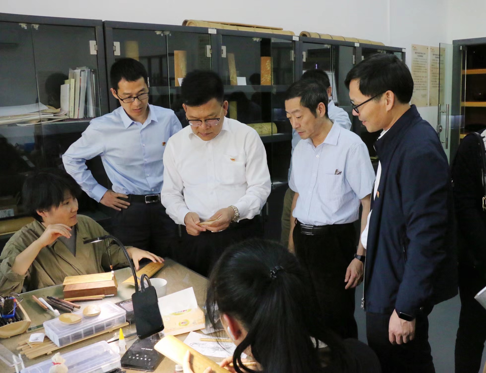张巨浪介绍了本次主题教育调研学习的目的,从学院创办背景、办学现状、人才培养等方面对我院起步开局阶段的基本情况做了简要介绍。他指出,希望通过本次主题教育调研交流,在高质量党建引领学院高质量发展、教师队伍建设、立德树人、专业建设、学科发展、校企合作、产教融合等方面学习工艺美院的先进做法和典型经验,希望兄弟院校之间能够建立沟通交流机制,共同探索职业教育发展新路径,打造技能人才教育高地。