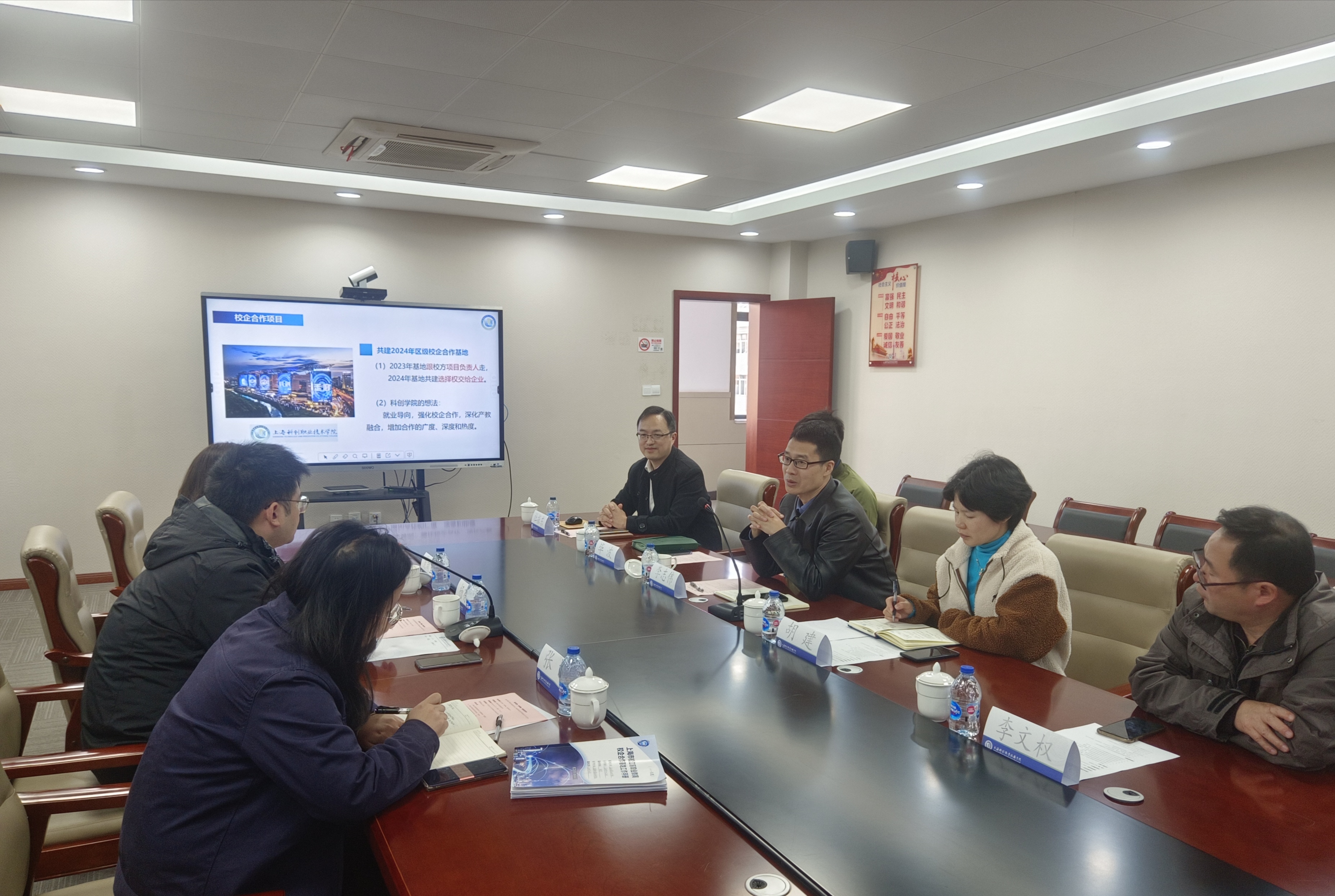 此次,有幸邀请到上海航天精密机械研究所全国劳模唐建平班组班组长、全国青年岗位能手、上海市先进工作者、上海市工匠获得者、技能大师工作室主持人杨有成来院交流是上海科创职业技术学院智能制造学院的专业设置契合上海航天精密机械研究所对人才的需求,同时杨有成大师的成长经历更能给予科创学子正向激励作用。校企双方不谋而合,“双向奔赴”,都对校企合作、产教融合充满信心和憧憬,希望能以技能大师工作室为抓手,统筹规划、协同创新,不断提升合作的热度、广度和深度。会议围绕活动背景、大师工作室规划、校企合作、专业建设等方面开展沟通交流,聚焦大师工作室布置、成员招募、活动安排、特色亮点等工作细节,进行深入交流,校、企、生、师多方互动,共同建好上海市高等职业教育杨有成技能大师工作室。