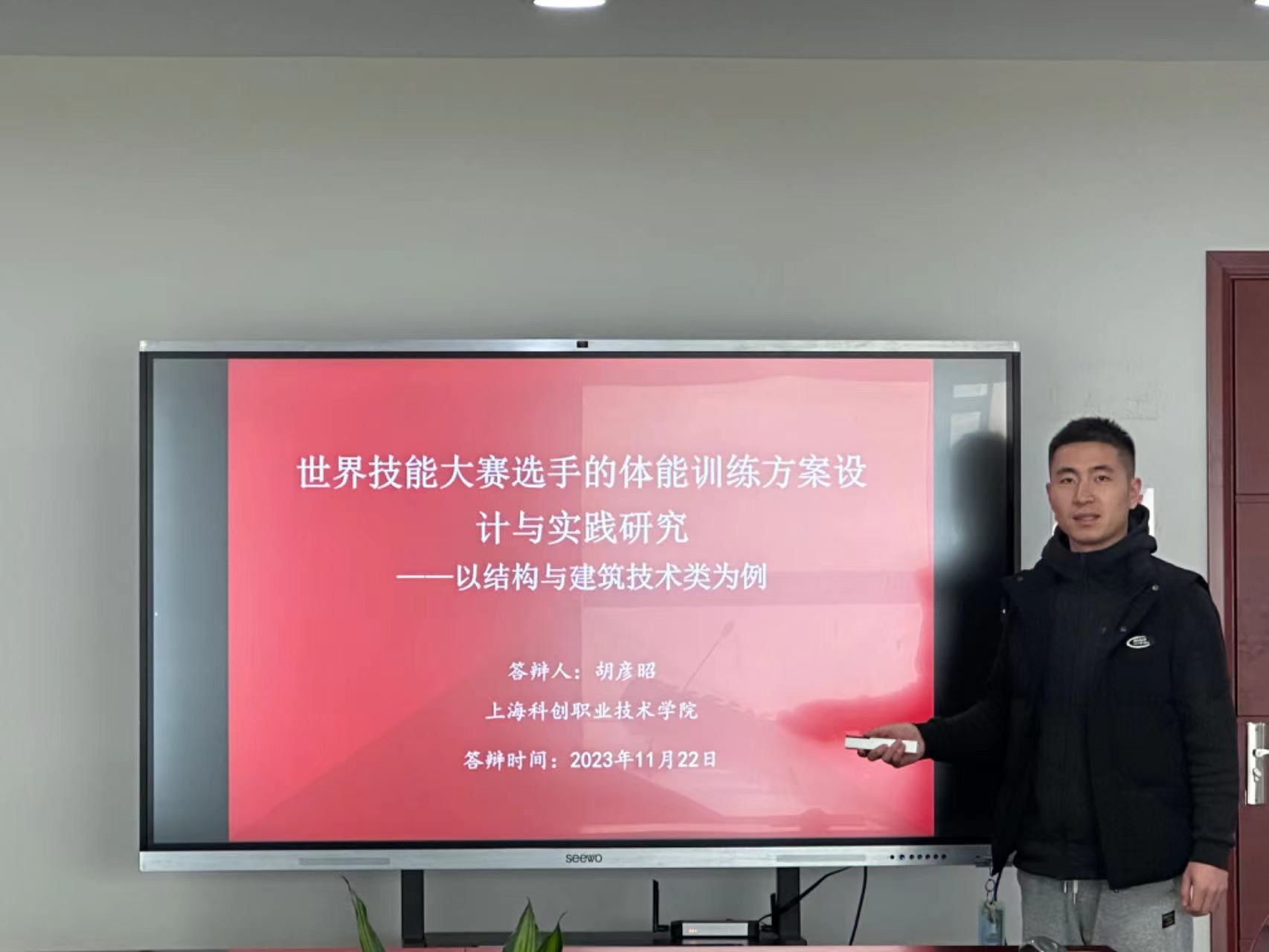 胡彦昭老师立项的课题为《世界技能大赛选手的体能训练方案设计与实践研究——以结构与建筑技术类为例》,该课题立足世界技能大赛,以结构与建筑技术类项目选手为例,从体能训练角度深入分析不同项目的体能特征与现状,综合运用人体解剖学、运动训练学、运动生理学等知识体系,发现技能选手体能方面的不足,紧密结合选手劳动特征,系统设计科学精准、可行有效、高度契合的体能训练方案,并对训练方案进行科学安排与实践,确保方案的可行性与有效性,不断提升我国世界技能大赛选手的体能素质和技能水平。