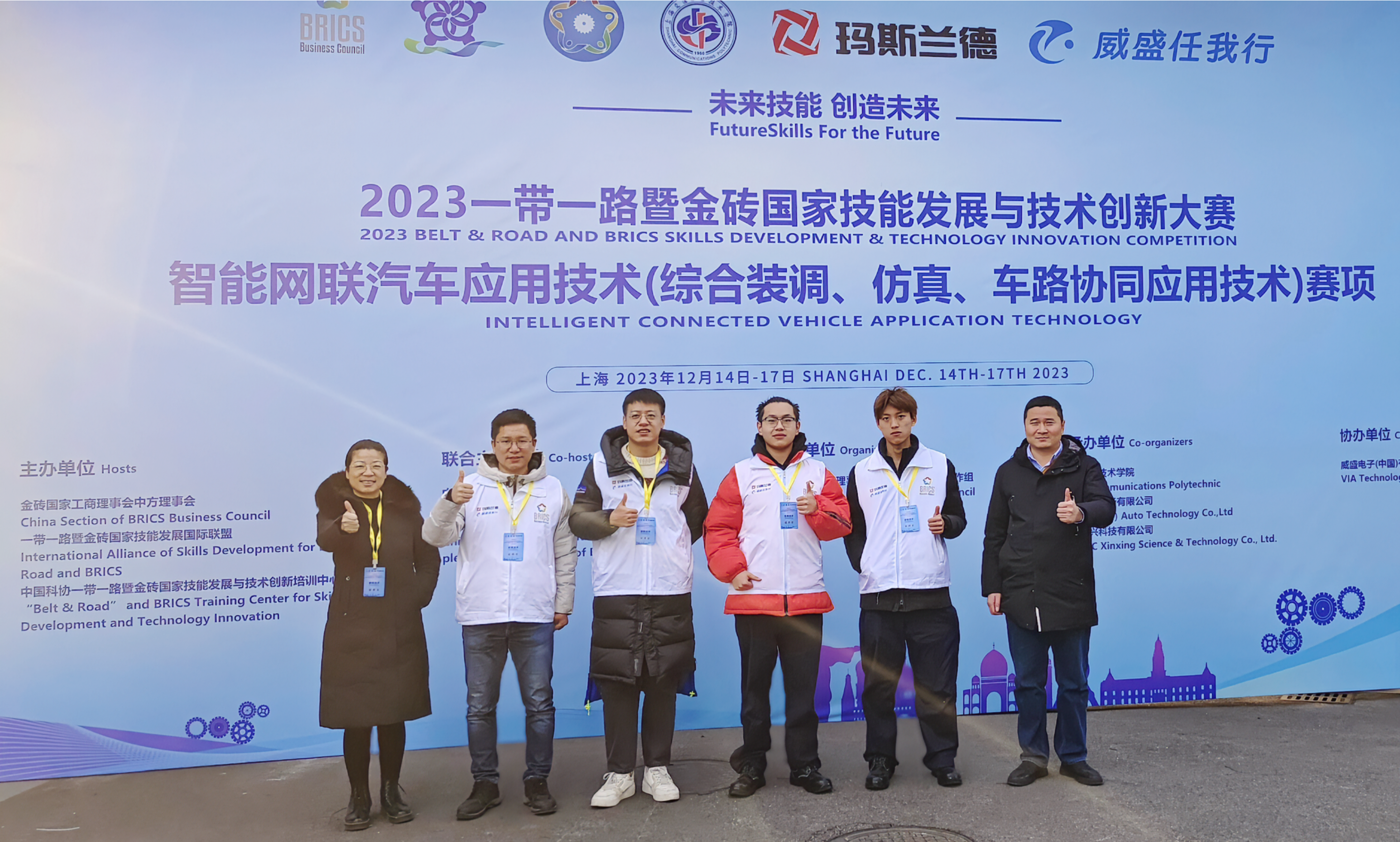 2023年12月17日,2023一带一路暨金砖国家技能发展与技术创新大赛智能网联汽车应用技术赛项国内总决赛在上海落下帷幕,来自全国各地中高职院校142支队伍齐聚上海,展开激烈角逐。上海科创职业技术学院组建职工组(教师)和高校组(学生)两个参赛队伍,经过奋战,学院张岩、秦光明两位教师荣获职工组金牌,洪新海、翟尹杰两位学生荣获高校组铜牌。