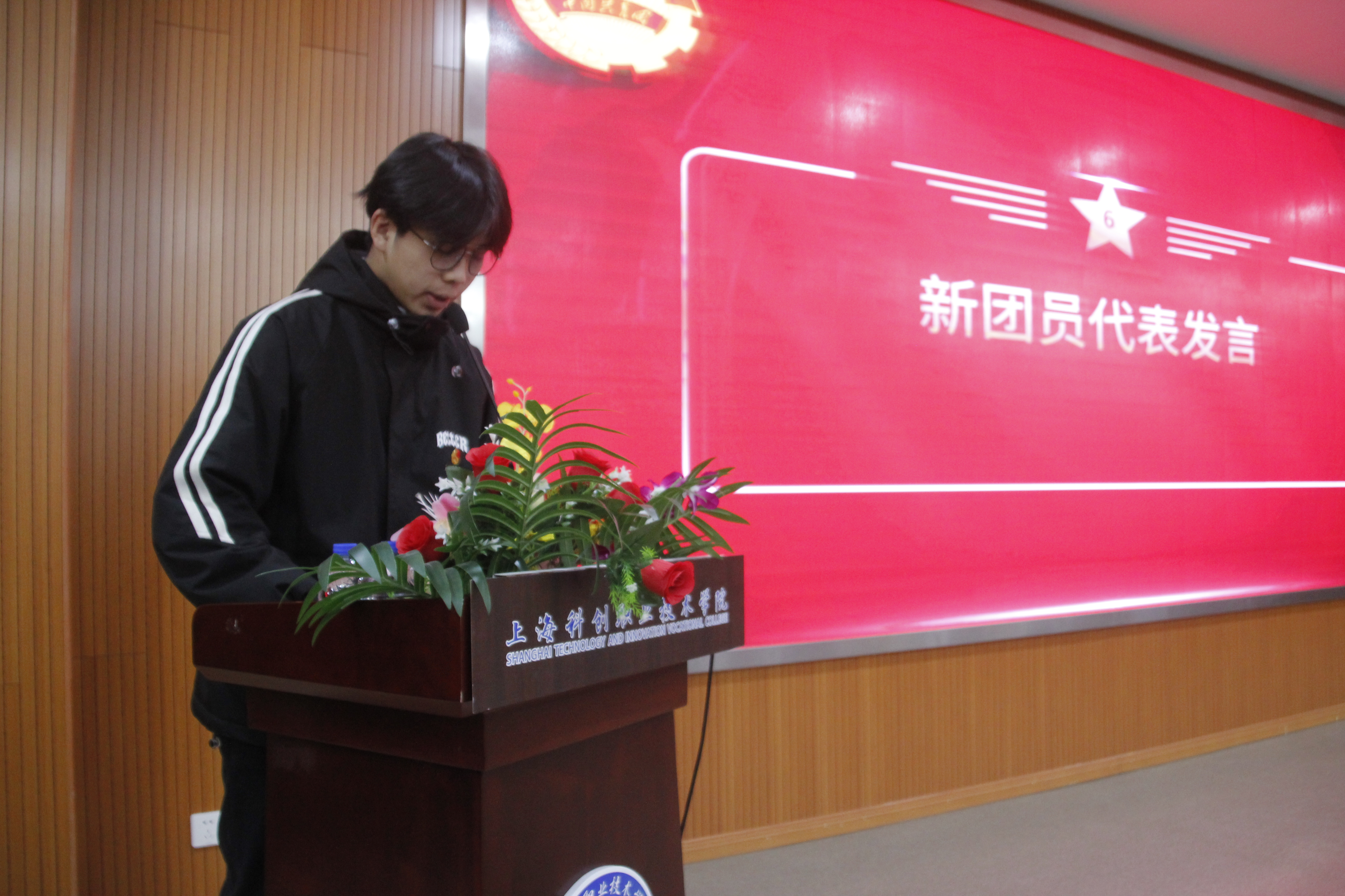 12月22日,上海科创职业技术学院2023学年新团员入团仪式暨“深入学习体会劳模精神,挺膺担当争做青年先锋”的主题展演活动顺利举办。在庄严而温馨的仪式上,30位科创青年走进了中国共产主义青年团的大家庭,成为首批在上海科创职业技术学院入团的学子,有着特别的意义。学院副院长项国平、学工部及各二级学院相关负责人、团委筹备组老师参加活动。