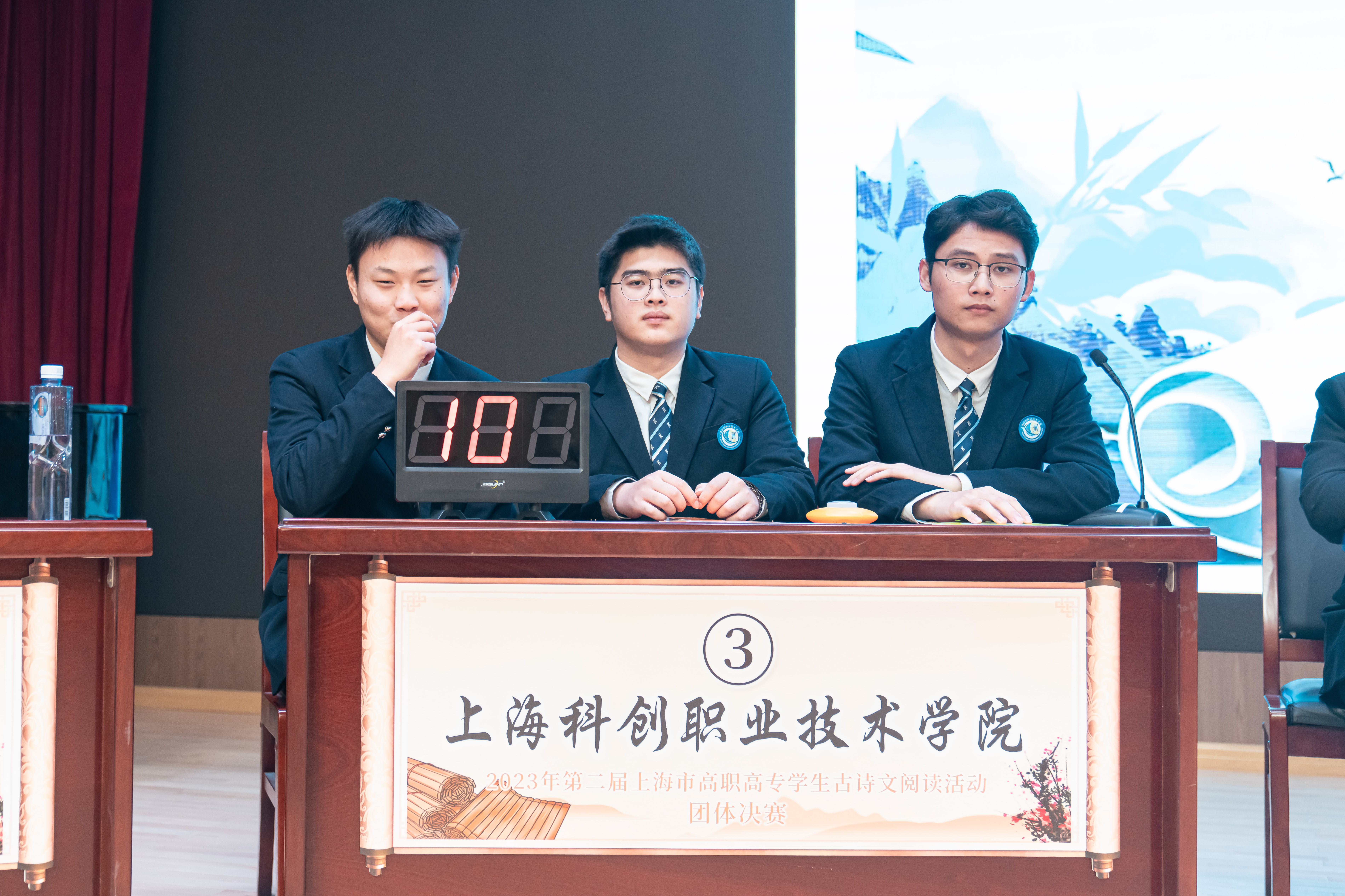 1月3日,“树职业理想 传民族精神”2023第二届上海市高职高专学生古诗文阅读活动决赛在上海南湖职业技术学院举行。上海科创职业技术学院代表队首次参赛即在决赛中力克劲旅、脱颖而出,获得团体总分第一的好成绩。