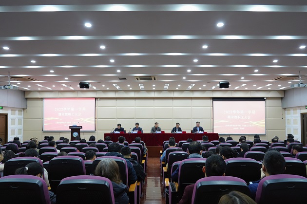 2023年科创职院全体教职员工同心同行同奋斗,共进共创共育人,铸就了科创职院的新起点新目标新辉煌。岁序更替,新元肇启,华章日新,在这新旧接续之际,为回顾一学期来的坚守与付出、成长与突破。2024年1月18日上午,上海科创职业技术学院召开2023学年第一学期期末教职工大会,学院领导班子出席会议,全体教职工参加。会议由党委书记张巨浪主持。