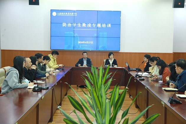 项国平指出校园欺凌关乎校园和谐环境的创设和学生身心健康成长,学院要通过制度建设、专题培训和加强监督管理来予以足够重视,做到教育在前,有心观察,及时发现、制止、上报和妥善解决。