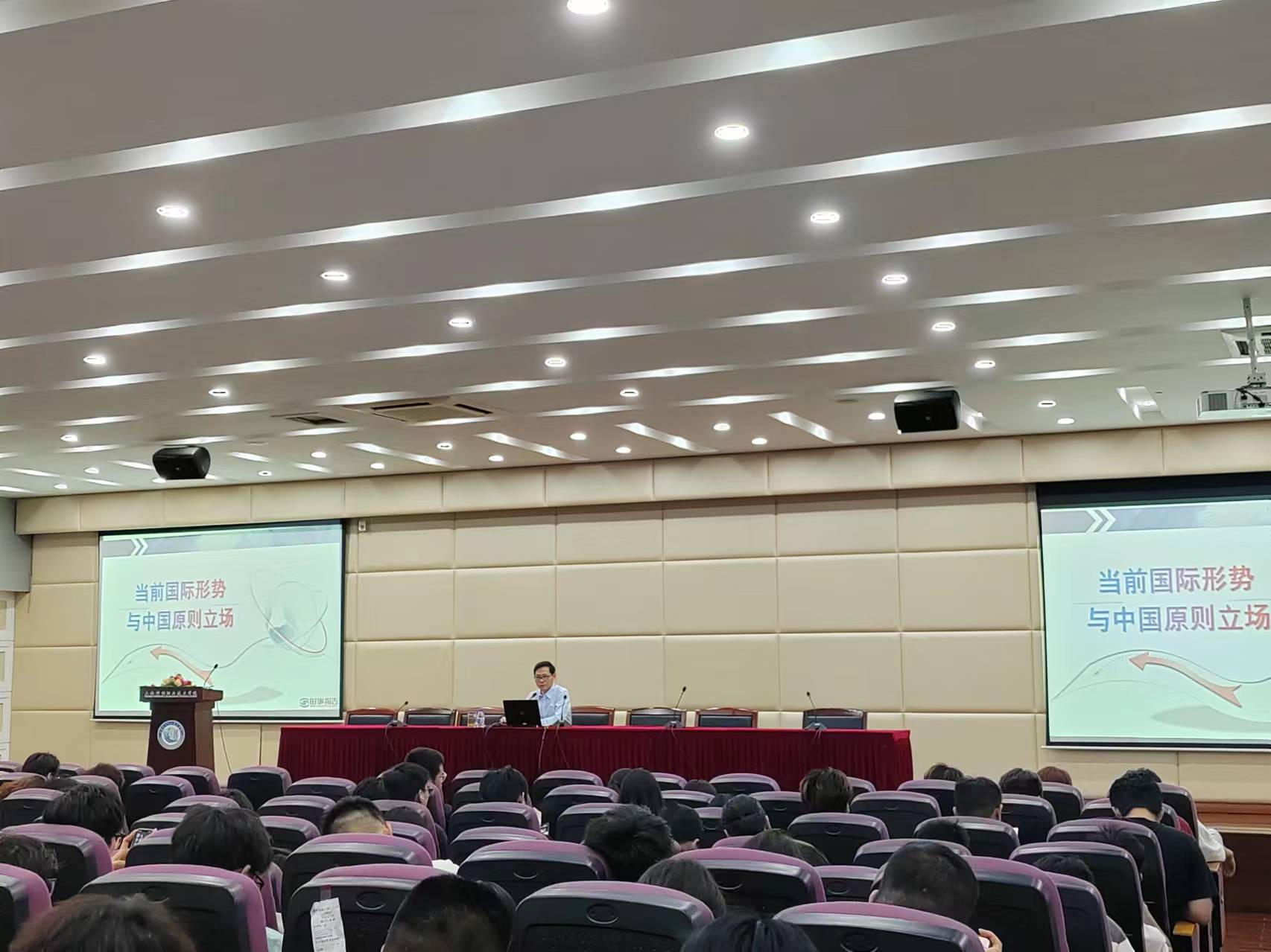 6月6日,学院党委副书记、院长李闽洲再次走上思政讲堂,围绕“当前国际形势与中国原则立场”话题生动开讲,学院2023级全体学生参加课程学习。