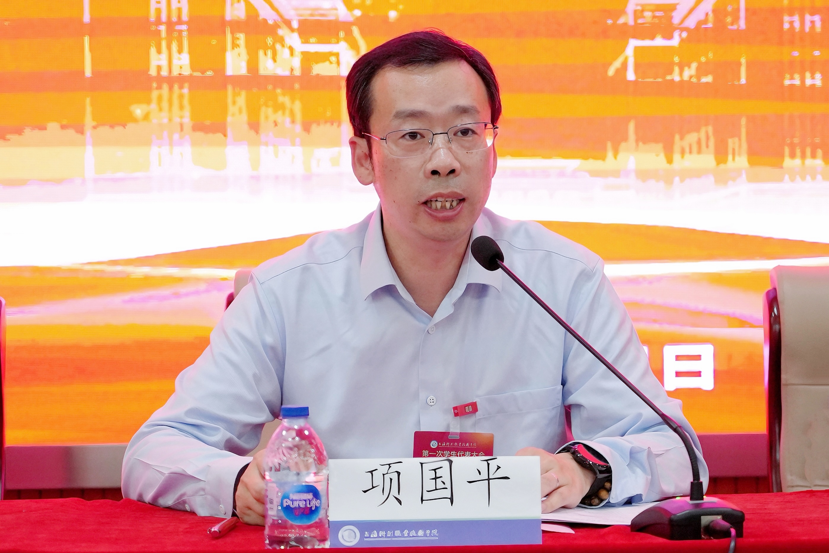项国平代表学院向大会的召开表示热烈的祝贺,向长期以来关心和支持我院学生会工作的市学联、兄弟高校表示衷心感谢,向出席大会的各位学生代表致以诚挚问候。他嘱托青年学生和学生骨干们,要坚定理想信念,厚植家国情怀,坚持用习近平新时代中国特色社会主义思想武装头脑;要坚守服务初心,当好桥梁纽带,把服务同学和服务大局落到实处;要坚持自我锻造,淬炼钢铁队伍,持续推进学联学生会组织的建设和完善。