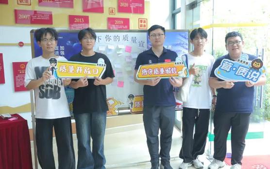 活动中,同学们以“青年对话”趣味知识问答形式,在轻松愉快的互动中进一步巩固了质量理念,并在会场外“质量墙”写下真挚宣言。