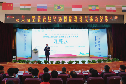 10月23日下午,2025一带一路暨金砖国家技能发展与技术创新大赛之“第六届工业机器人装调维修技术”赛项决赛开幕式在上海科创职业技术学院举行。开幕式由上海科创职业技术学院副校长项国平主持。