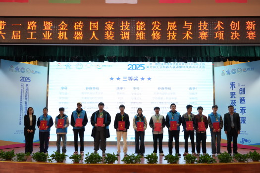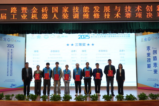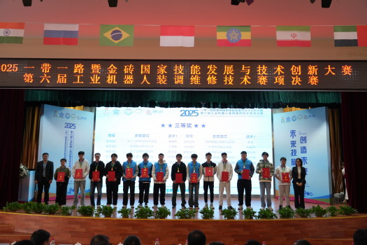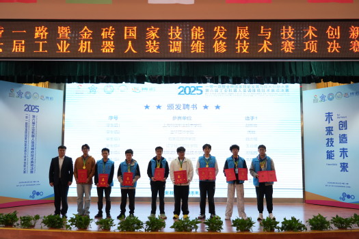10月26日上午,2025一带一路暨金砖国家技能发展与技术创新大赛之“第六届工业机器人装调维修技术”赛项决赛闭幕式暨颁奖仪式在上海科创职业技术学院举行。经过三天的激烈角逐,来自国内外55所院校152名选手圆满完成了所有赛程并决出各奖项。