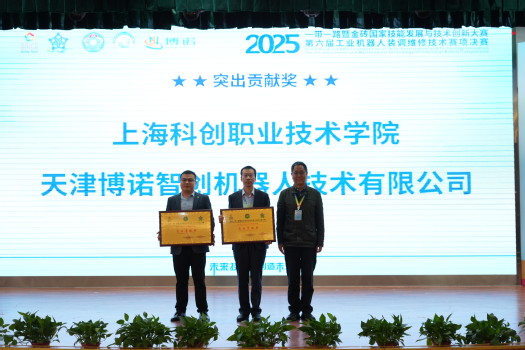 上海科创职业技术学院荣获“突出贡献奖”“最佳组织奖”,学校学生赵铭俊、蔡响分别荣获学生组一等奖、三等奖,教师邓亚颂、吴陈陈分别荣获职工组一等奖、二等奖,王倩荣获“优秀指导教师”。其中赵铭俊、邓亚颂、吴陈陈晋级 2026 年摩洛哥北非国际赛。
