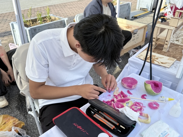 食品雕刻社则化平凡为神奇,同学们手握刻刀,将萝卜、西瓜等普通食材蜕变为精雕细琢的艺术品,每一件作品都凝聚着专注与匠心,生动诠释了“工匠精神”的内涵。