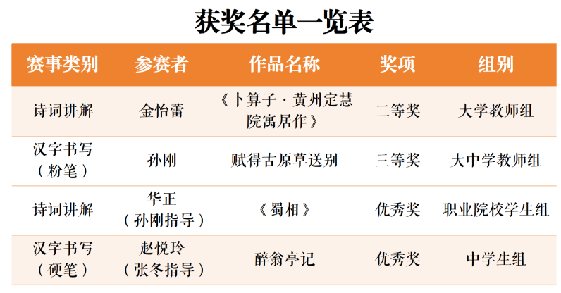 近日,由教育部、国家语言文字工作委员会主办的第七届中华经典诵写讲大赛全国总决赛评选结果揭晓。科创职院师生表现优异,共斩获全国二等奖1项、三等奖1项、优秀奖2项,实现了获奖等级与数量的双重突破。