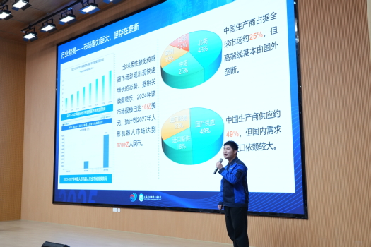 “微灵触觉”项目参与者刘晨,则重点展示了该项目的硬核科技实力。他介绍,在校企导师的双重指导下,团队攻克了柔性介电材料优化技术,研发的新型传感器已在达明机器人、海克斯康等企业完成工业场景验证。