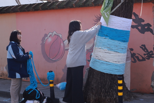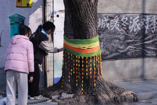 古街老树披上多巴胺“毛衣”,用匠心织就暖心守护