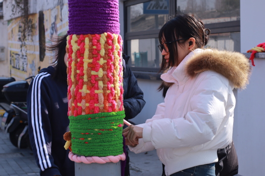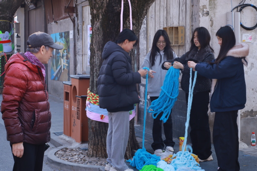 活动现场,同学们迅速分工,用五彩斑斓的毛线和充满童趣的装饰,为街边的老树穿上了厚厚的“新衣”,让这条江南古街在寒冬中焕发出别样的温暖与生机。指导老师们一边传授技巧,一边讲解古建筑与树木共生的生态意义。经过一番忙碌,一件件色彩明快、样式规整的树木防寒“冬衣”陆续完工,成为古街冬日里的特色景观,吸引不少市民驻足观赏、拍照记录。