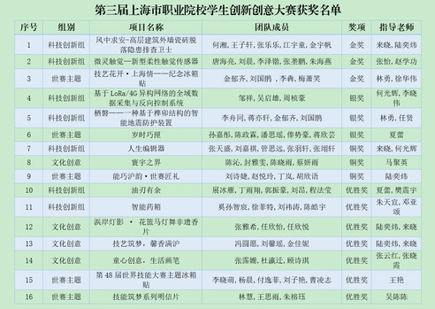 近日,上海市教育委员会公布了第三届上海市职业院校学生创新创意大赛获奖名单,上海科创职业技术学院首次参加该项比赛,共斩获金奖3项、银奖3项、铜奖3项、优胜奖7项,共计16个项目获奖,展现了学校学子扎实的专业技能、突出的创新能力和良好的综合素质。