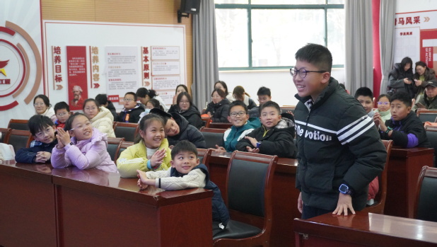 “机器人能帮我们写作业吗?”“太空站里怎么生活?”孩子们的疑问中闪烁着童趣与思考。宣讲员耐心解答,现场笑声与掌声交织,气氛活跃。宣讲中还特别融入了学校世界技能大赛冠军的成长经历,通过技能成才、技能报国的真实故事,引导孩子们理解“劳动光荣、技能宝贵、创造伟大”的价值内涵。