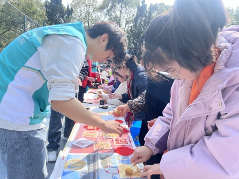 本次游园会精心设置捶丸、投壶、沙包、套圈等传统游艺项目,同步开设福字拓印、剪纸、扭扭棒“柿柿如意”等非遗手作体验区,兼顾趣味性与文化性。志愿者们分工明确、配合默契,投壶区、套圈区、拓印区、剪纸区等处,处处可见他们忙碌的身影、真诚的笑容。