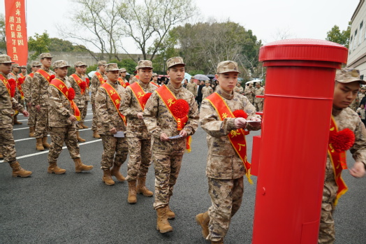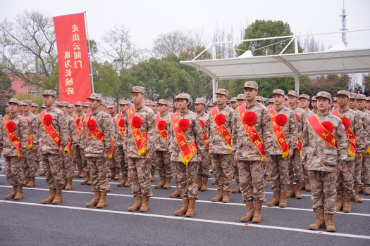 3月24日,松江区2026年上半年新兵欢送仪式在区国防教育训练基地举行。上海科创职业技术学院9名优秀学子身披绶带、身姿挺拔,光荣应征入伍,即将奔赴军营。