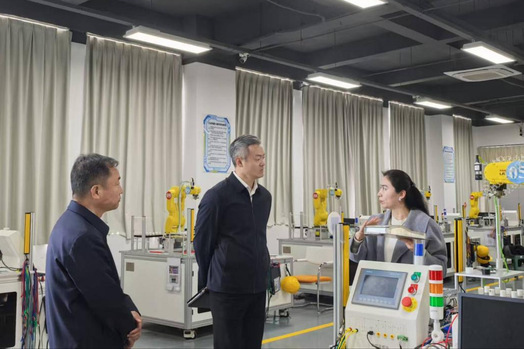 孙宁一行实地参观了学校世赛集训基地,进一步了解学校技能人才培养、教学场景建设情况。