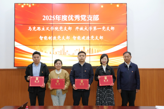 会议对2025年度在党建工作中表现突出的党支部进行表彰,授予马克思主义学院党支部、开放大学第一党支部、智能制造党支部、智能建造党支部“2025年度优秀党支部”称号。会议号召全校各级党组织和广大党员干部以先进为榜样,踔厉奋发、勇毅担当,持续锻造让党放心、让师生满意的坚强战斗堡垒。