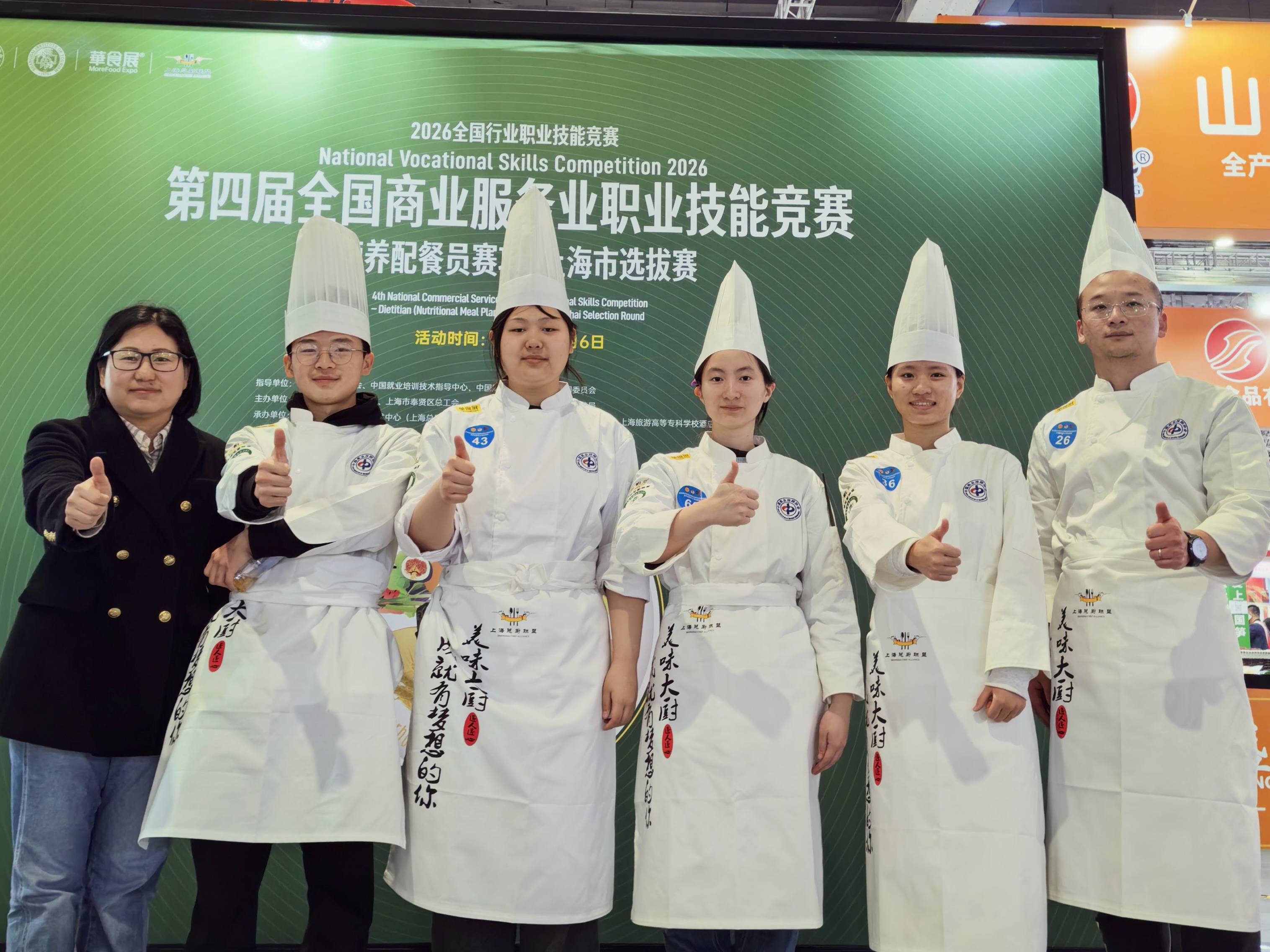 3月6日,第四届全国商业服务业职业技能竞赛“营养配餐员”赛项上海市选拔赛,在国家会展中心(上海)举办的“第六届华食展”期间隆重举行。学校智慧服务学院陈怡帆、雷婷、蔡岷秀和章泽梁四名同学斩获1项特金奖、1项银奖及2项铜奖,青年教师樊震宇荣获职工组金奖,充分展现了科创师生过硬的专业素养与出色的竞技水平。本次竞赛严格参照《职业分类大典》中“营养配餐员”国家职业技能标准设置,全面考核选手从食材科学搭配、营养素精准计算,到菜品创意设计与制作的综合能力。比赛重点聚焦“白领套餐”设计开发,深入探索如何为快节奏职场人群,打造兼具色香味与营养均衡的创新餐食解决方案,赛事分为理论和实操两个部分。其中,实操环节尤为考验选手综合能力,要求参赛者围绕特定人群的营养需求,独立完成从食材科学搭配、营养素精确计算到菜品创意呈现的全流程设计与制作。作为本届竞赛2026年的首场赛事,本次选拔赛共吸引上海市餐饮企业及职业院校的80名选手参赛。备赛工作自1月上旬正式启动,贯穿学期末及整个寒假。在智慧服务学院的全力支持下,指导教师张丽丽科学制定备赛日程,参赛学生克服困难,积极有序参与各项训练任务;樊震宇老师为更好掌握比赛细节,