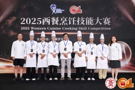 近日,由中国烹饪协会主办,经世界厨师联合会(Worldchefs)官方认证的2025西餐烹饪技能大赛在苏州国际博览中心圆满落幕。学院组建西餐、烘焙3支队伍参加本次大赛,与全国五星级酒店、米其林餐厅和职业院校等70支顶尖厨师团队同台竞技,最终西餐艾美队(丁毅、张博扬、雷婷)获金奖,西餐富悦队(郑洪茂、桂沪华、汪洋)获铜奖,烘焙团队(姚静怡、陈怡帆)获银奖。为期两天的比拼中,参赛团队需在限定时间内完成7道西式菜肴制作和1套烘焙展台。大赛从食材运用、技法掌握、摆盘艺术及风味平衡等维度综合评分,全面考察团队的烹饪技艺与创新能力。现场也吸引了亚洲多国及地区专业观众驻足。为了在比赛中取得优异成绩,参赛师生们利用晚上和假期时间,进行了刻苦的训练。从菜品的设计到制作工艺的不断改进,从口味的反复斟酌到口感的精心调整,每一个环节都凝聚着他们的汗水。指导教师王丽梅、樊震宇结合赛事组委会相关文件要求,选用甜虾、三文鱼、牛肉、鸡肉、鱼肉等主料,设计低温大理石牛肉卷、三色淋面鱼柳三重奏、甜虾蟹籽卡巴乔等菜品组成的西式套餐,智慧服务学院对比赛高度重视和悉心指导,做好后勤保障工作,学生们则以饱满的热情和高度的责任感,