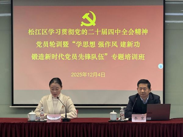 近期,松江区举办学习贯彻党的二十届四中全会精神党员轮训暨“学思想 强作风 建新功 锻造新时代党员先锋队伍”专题培训班,示范引导全区广大党员将思想和行动统一到全会决策部署上来,为奋力谱写中国式现代化区域实践新篇章凝聚思想共识,注入强劲动力。科创职院各级党组织扎实落实“集中听课+交流研讨”模式,积极参加培训。