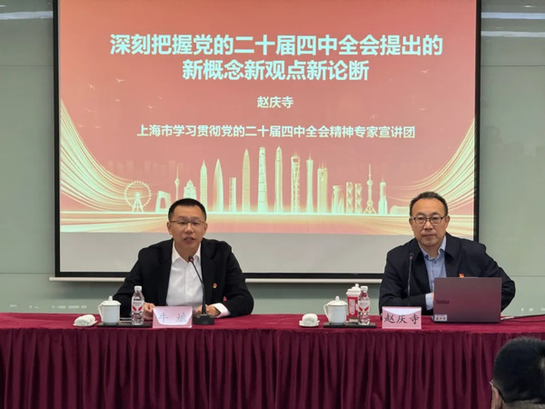 培训邀请华东政法大学马克思主义学院院长、教授、博士生导师,上海市党的二十届四中全会精神宣讲团成员赵庆寺和上海市委党校社会学教研部副教授、社会学博士李宽进行专题授课。赵庆寺院长系统解读党的二十届四中全会的重要内容,结合案例剖析了党的二十届四中全会提出的新概念新观点新论断;李宽教授围绕习近平总书记考察上海重要讲话精神,从重大意义、实践要求、战略部署等方面作专题辅导。课程内容视野宏阔、内涵丰富、逻辑严密、深入浅出,既有理论高度,又有实践深度,对于广大党员干部准确理解、把握和贯彻党的二十届四中全会精神、习近平总书记考察上海重要讲话精神具有重要的启发和指导作用。