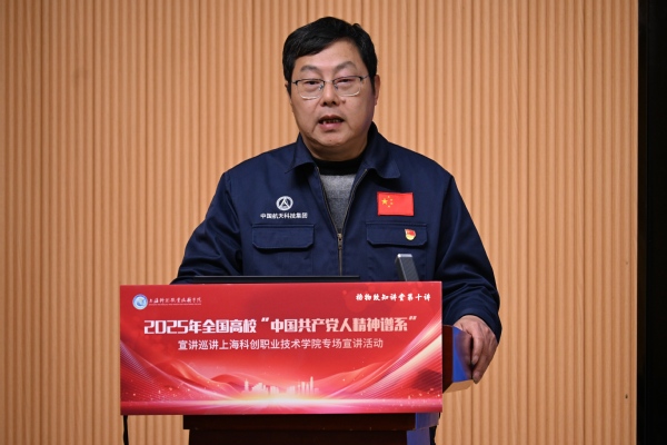12月9日,全国高校“中国共产党人精神谱系”宣讲巡讲上海科创职业技术学院专场活动暨学校“格物致知讲堂”第十讲顺利举办。活动特邀全国劳动模范、全国五一劳动奖章获得者、全国道德模范,上海航天设备制造总厂有限公司对接机构组班组长王曙群同志作专题宣讲。