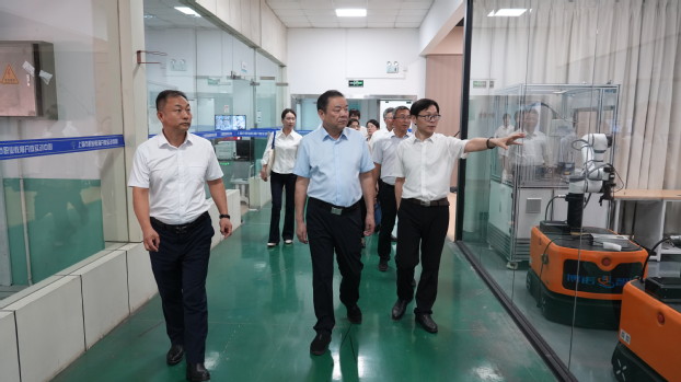 调研组一行还走访了世界技能大赛工业4.0项目实训室,现场听取了学院教师、第47届世赛冠军获得者卢俊威关于训练条件、备赛机制及成果转化等方面的详细介绍。随后,调研组深入学校实训中心,实地察看汽车、数控、工业机器人实训中心和精细木工世赛基地,与师生亲切交流,全面了解教学实施与技能实训情况。