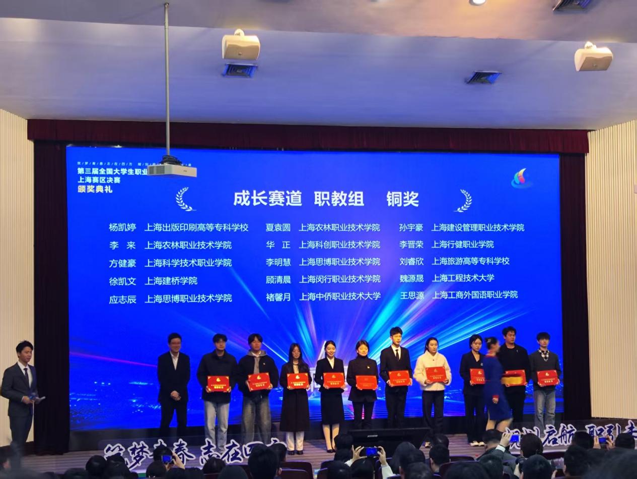 在第三届上海市大学生职业规划大赛(成长赛道)中,我校选送的优秀选手智能建造学院装饰2431华正同学凭借扎实的职业规划、出色的现场表现,在全市高校学子中脱颖而出,荣获铜奖。这一荣誉不仅展现了华正同学过硬的综合素质与明确的职业追求,也为我校人才培养成果增添了亮丽的一笔。