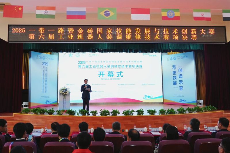 10月23日下午,2025一带一路暨金砖国家技能发展与技术创新大赛之“第六届工业机器人装调维修技术”赛项决赛开幕式在上海科创职业技术学院举行。开幕式由上海科创职业技术学院副校长项国平主持。