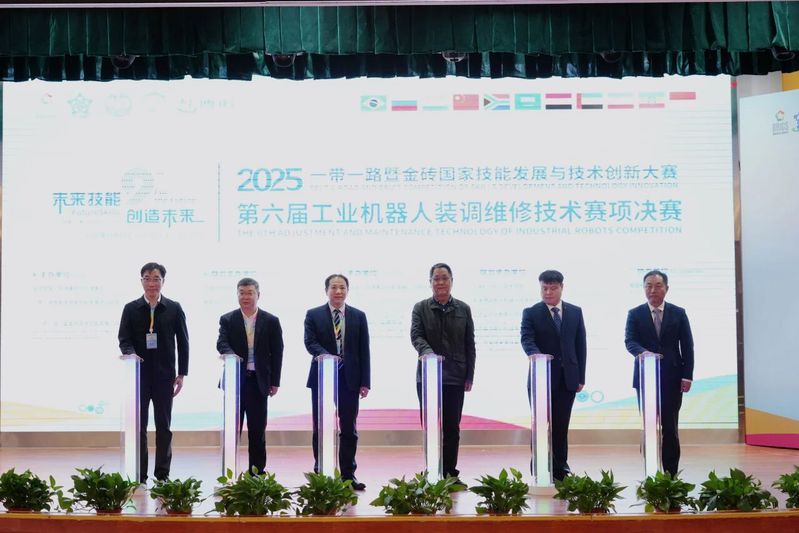 金砖国家技能发展与技术创新大赛组委会执委会主席、一带一路暨金砖国家技能发展国际联盟理事长、金砖国家工商理事会技能发展、应用技术与创新中方工作组组长刘振英,金砖国家技能发展与技术创新大赛组委会执委会副主席何勇,上海市教委职教处副处长马骏,赛项仲裁长、天津市工艺管理协会副会长、教授沈兴东,赛项专家组长、天津职业技术师范大学机器人及智能装备研究院院长、教授邓三鹏,赛项裁判长、天津市武清区职业教育中心党委委员副校长罗洋,上海市松江区教育局副局长朱永,泰国格乐大学副校长Supat Teeravechcharoenchai,天津博诺智创机器人技术有限公司总经理周旺发,上海科创职业技术学院党委书记何锋,上海科创职业技术学院党委副书记、校长李闽洲等来自国内外的领导嘉宾、专家学者、企业代表以及参赛选手齐聚一堂,共同见证这场国际性技能盛事的启动。