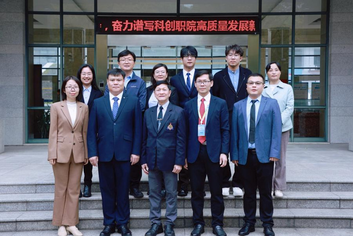 周旺发表示,非常荣幸能为两所高校搭建合作桥梁。此次联合科创职院向泰国格乐大学捐赠的人工智能与工业机器人系统设备,将让泰国师生共享中国智能制造发展的成果,推动中泰技术共同进步。他希望今后三方合作继续走实,在人才培养、技术研发、国际交流等方面持续深化,实现共赢。 在与会嘉宾的共同见证下,三方代表正式签署国际合作共建协议,这标志着两校在国际产教融合方面迈出实质性一步。
