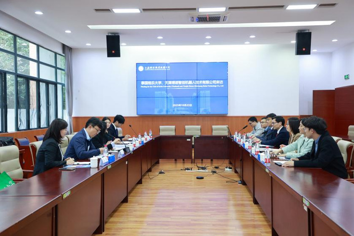 2025年10月23日下午,泰国格乐大学副校长Supat教授、天津博诺智创机器人技术有限公司总经理周旺发一行莅临学校开展考察交流活动。学校党委副书记、校长李闽洲出席活动。