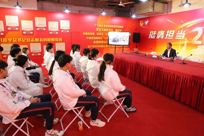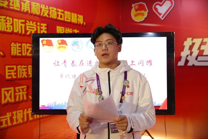 慰问期间,一场以“让青春在进博会舞台上闪耀——牢记使命,践行理想,绽放风采”为主题的微党课同步展开。党委书记何锋围绕“为什么是我们”“我们凭什么”“我们该怎么做”三个问题展开。党课指出,进博会是国家重大战略平台,青年志愿者的一言一行代表着学校形象、上海风貌和中国的青春风采,肩负着光荣使命。学校学子们能够站上这一舞台,源于学校“世界冠军的摇篮、高技能人才的沃土、产教融合的熔炉”三大办学特色所赋予的底气与力量。冠军精神、家国情怀与实干品格,共同塑造了科创青年敢于担当、勇于奉献的志愿底色。何锋表示,志愿者就是一道光,它照亮了人间美好与希望;志愿精神就是一种理想,是值得人生追求的、前进的;志愿团队就是社会进步的大家庭,让生活充满温暖和幸福的味道。他从一位奋斗者的视角出发,将自己一路走来践行初心使命的经历娓娓道来,与党课内容紧密结合,生动地召同学们珍惜荣誉、勇于担当,在志愿服务中展现“奉献、友爱、互助、进步”的精神,以真诚服务和专业素养,向世界展示可信、可爱、可敬的中国青年形象,让“科创青年”的名字在进博会的舞台上熠熠生辉。