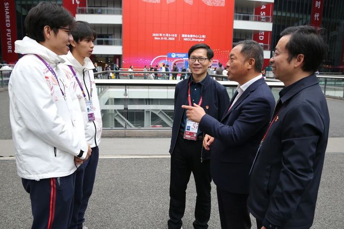 11月9日上午,在第八届中国国际进口博览会服务保障一线,上海科创职业技术学院的“小叶子”志愿者们迎来温暖关怀。市教卫工作党委书记江帆、副书记顾红亮亲临国家会展中心“小叶子之家”信仰大厅,亲切慰问正在参与微党课的师生代表。江帆一行听取了学院党委书记何锋关于学校办学情况的介绍,对“小叶子”们的专业服务和奉献精神给予高度评价,并对科创职院在人才培养和办学特色方面取得的成效表示充分肯定。