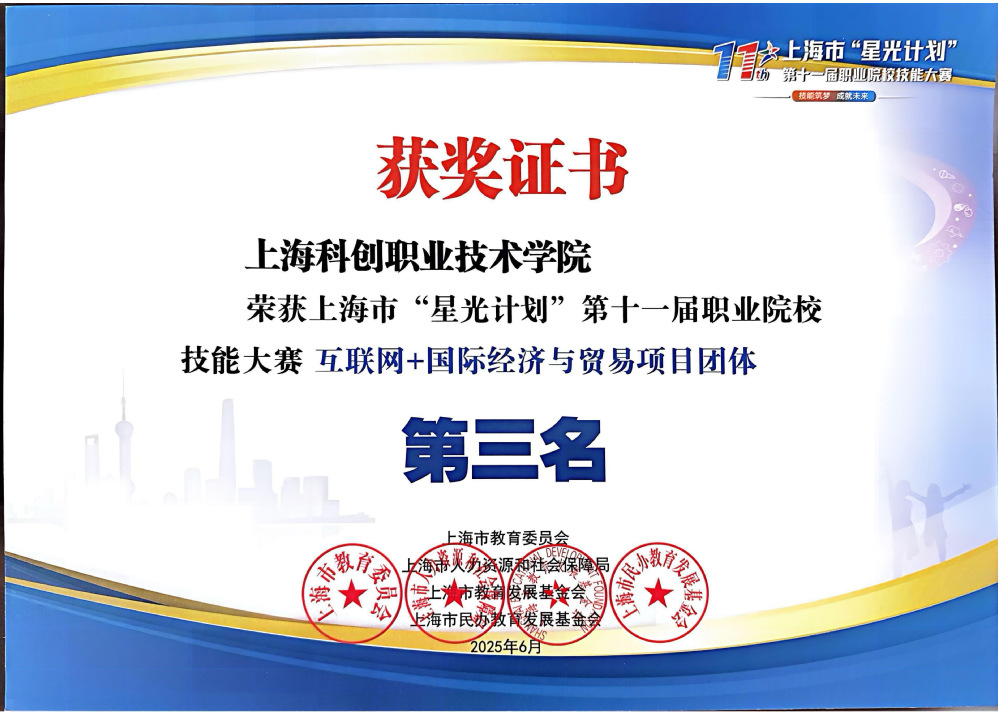 上海市“星光计划”第十一届职业院校技能大赛互联网+国际经济与贸易项目(高职组)团体第三名