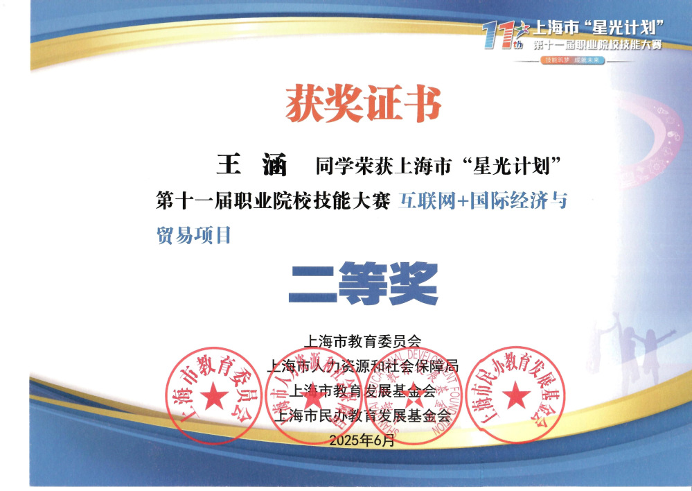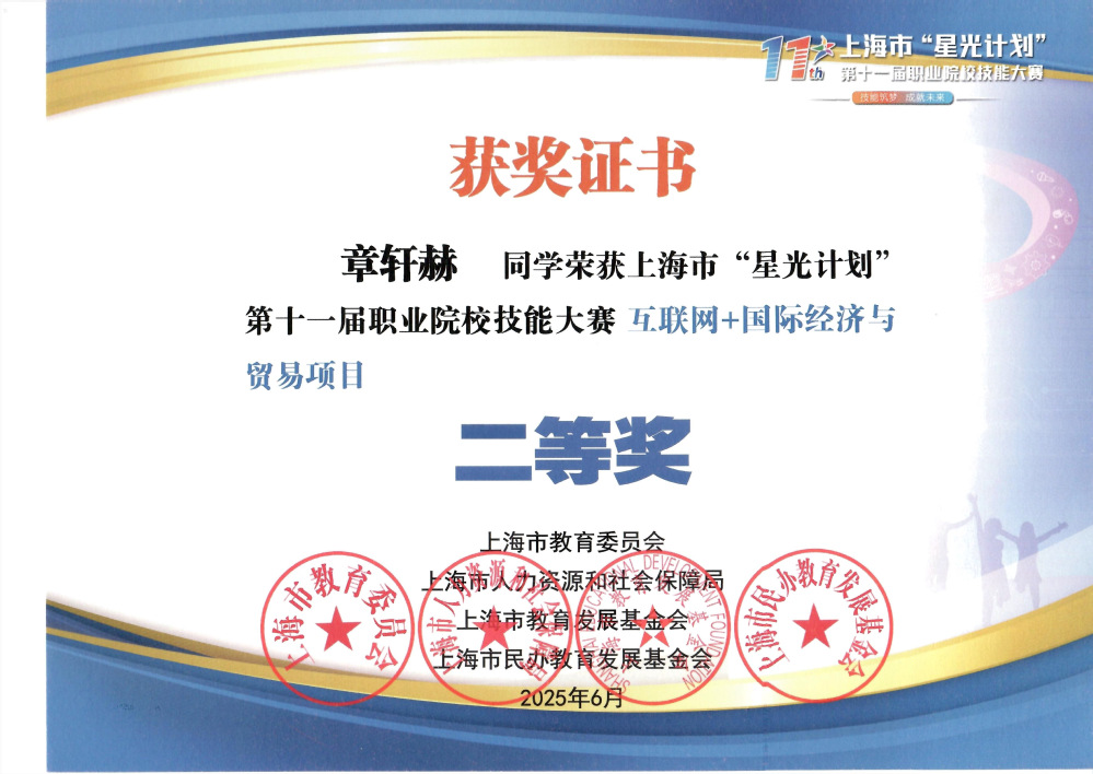 上海市“星光计划”第十一届职业院校技能大赛互联网+国际经济与贸易(高职组)项目二等奖 (第二组 排名不分先后)