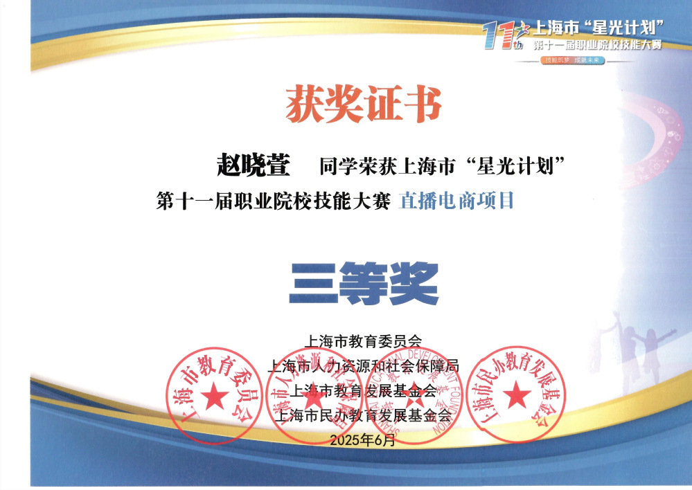 上海市“星光计划”第十一届职业院校技能大赛直播电商项目三等奖(第二组 排名不分先后)